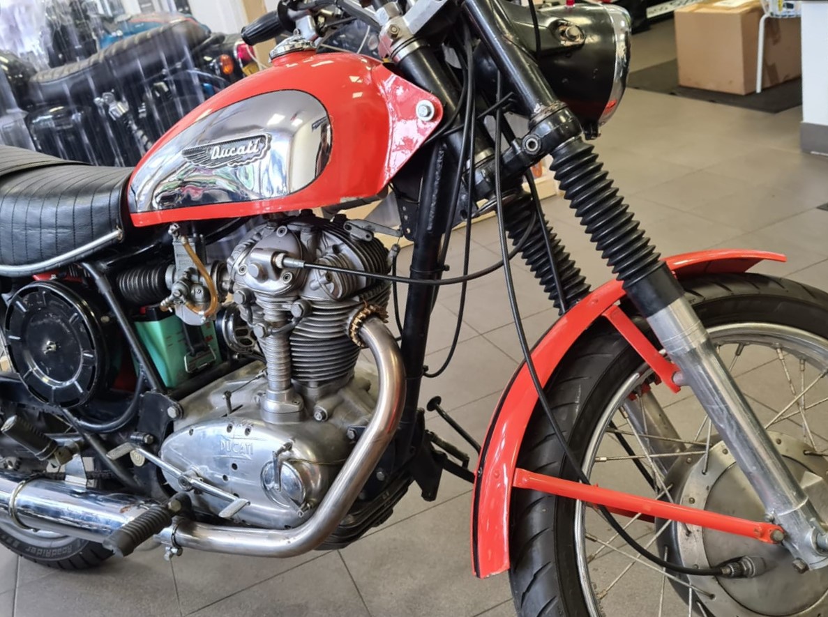 The reasons for the Scrambler's commercial success were manifold. It had an excellent frame and an engine perfectly suited for its function. It was not the fastest bike of its day, but its general performance and absolutely centered riding position, made it one of the most delightful machines of the era. It was, moreover, extremely stylish: rounded lines, simultaneously classical and modern, and bright colors contrasting with the black running gear and chrome gas tank.